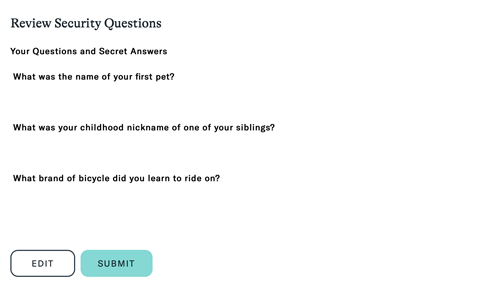 ⑩「SECURITY QUESTIONS」の確認