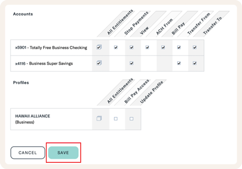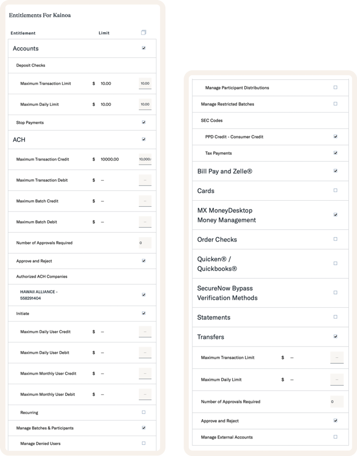 ユーザーごとに使える機能やお取引金額の上限などを設定することができます。