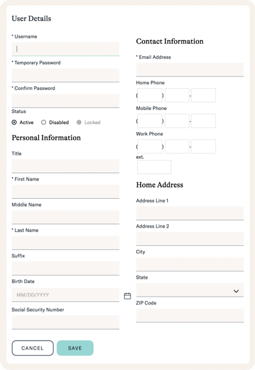 - ユーザーの情報を入力