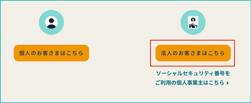 インターネットバンキング初回登録のページはこちら - 「法人のお客さま」をクリック