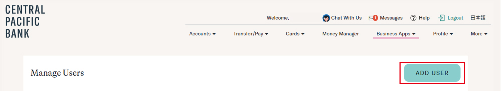 - 右の「ADD USER」ボタンをクリック