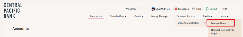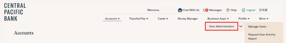 - プルダウンメニューの中から「User Administration」を選んでください