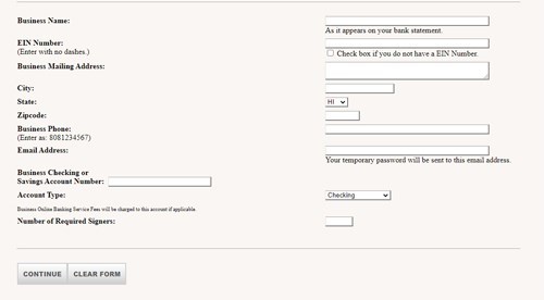 「Please Choose」のところでBusiness Online Bankingを選択してください。 なお、有料のACHパッケージをご希望の場合は、Business Online Banking with ACH Packageを選択してください。