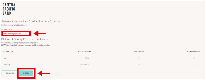 メールアドレス、口座ごとの設定を確認し、間違いがなければ 「ENROLL」ボタンをクリックします。 - 設定完了メールを受信