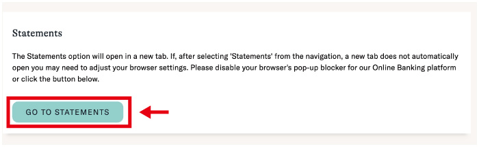 お使いのブラウザの設定で、ポップアップがブロックされている場合は、下記の表示が出てきますので、「GO TO STATEMENTS」ボタンをクリックしてください。