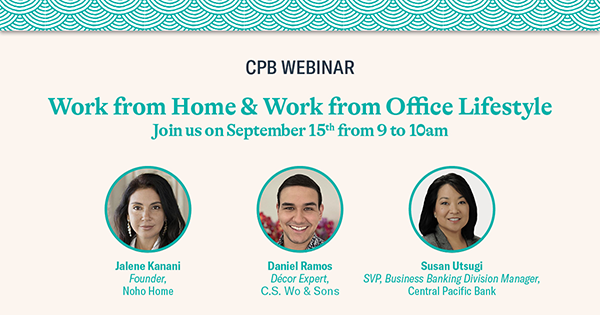 2CPBは1909年創業の老舗家具店、C. S. Wo & Sonsと「テレワーク時代のホームインテリア」に注目したウェビナーを共催いたします。コロナ禍で急速にテレワークの機会が増える中で、インテリアのアイデアや新しいトレンドをご紹介いたします。また現在大注目のハワイのインテリアブランド、Noho Home の創業者、Jalene Kananiも登場。ハワイアンのパターンを用いたインテリアグッズで、より豊かなテレワークの新しいライフスタイルを提案する予定です。ぜひご参加ください。