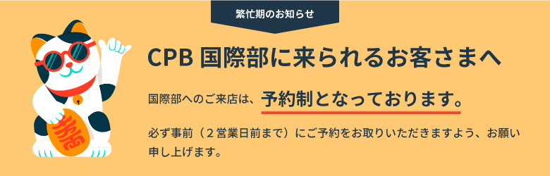 繁忙期のお知らせ:CPB国際部への来店は事前予約が必要です